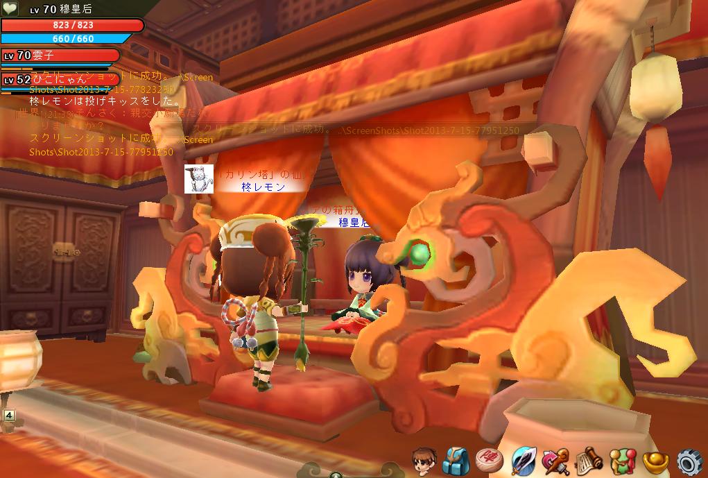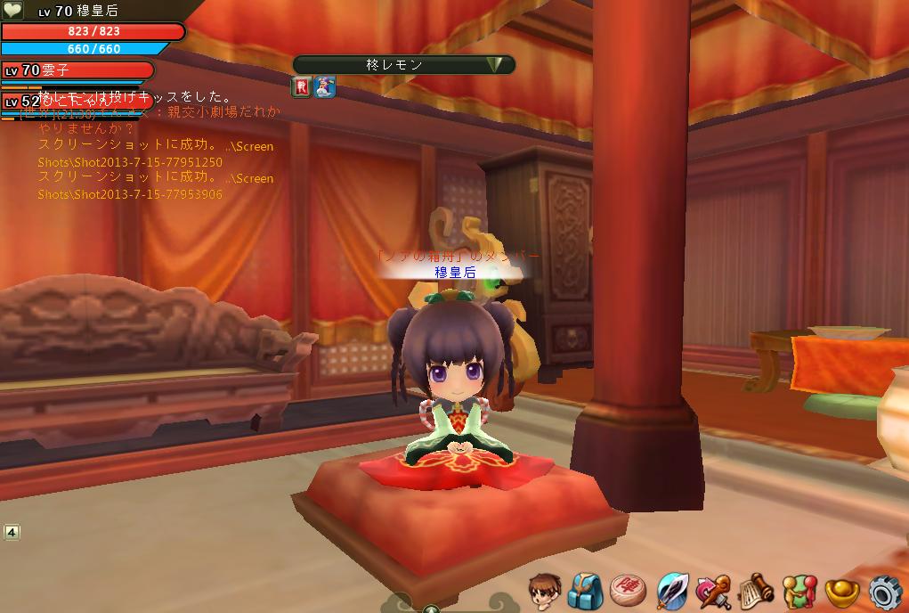 16 July 洛陽決戦マジ洛陽決戦。 こんばんは、昨日志望校のオープンキャンパスに行った際迷い、一時間半の行程を三時間かけて行った野乃小町です。 最近気づいたことですが・・・ 洛陽決戦が楽しすぎる!主に終了後が!! あそこってほら、NPCのいない洛陽が舞台じゃないですか。 なので、いろんなところでやり放題できるんですよね。 周様と写真を撮ったり、後宮でクッションに座り込んだり・・・ 時間がすぎるとほとんどの人がいなくなるので、エモーションもやり放題という。 これは遊ぶっきゃないでしょう!と。 あとは、小劇場完了後園遊会へ戻らずに、とかね! だってエモーション可愛いんですもの。誰もいないところでやらずしてどこでやる。 と、いうわけで以下今日洛陽決戦にて撮影したスクショですw ◎皇后様鎮座中 後宮にて。 さりげなくあの寝台中に入れるんですw ◎皇后様へ捧げます 姉がお花をくれました。 別アングル。これも可愛い。 ◎リラックスタイム チンミンたちと一緒に他愛もない話をしてはニコニコしてそうです。 嫁ぐ相手が違う?気にするな! ◎図書室にて 雪児さんの図書館にて調べ物。先生は大変です。 このすぐ近くの机が勉強中って雰囲気が凄いして好きだったり。 ああ、何故あそこの座布団はめり込むのか・・・。 ◎穆皇后の大号令。 みんなー!私についてきてね!!(ジャーン 漢軍風穆ちゃんが見れそうです。 下に兵士が並んでいて、ビシッとポーズを決めれば完璧かな?w ◎未知との出会い。 ・・・・・・・・・ 何この子可愛い。 取り敢えず今日はこの辺で! 後日また前に撮ったものも載せます。 では!ノシ [0回]PR